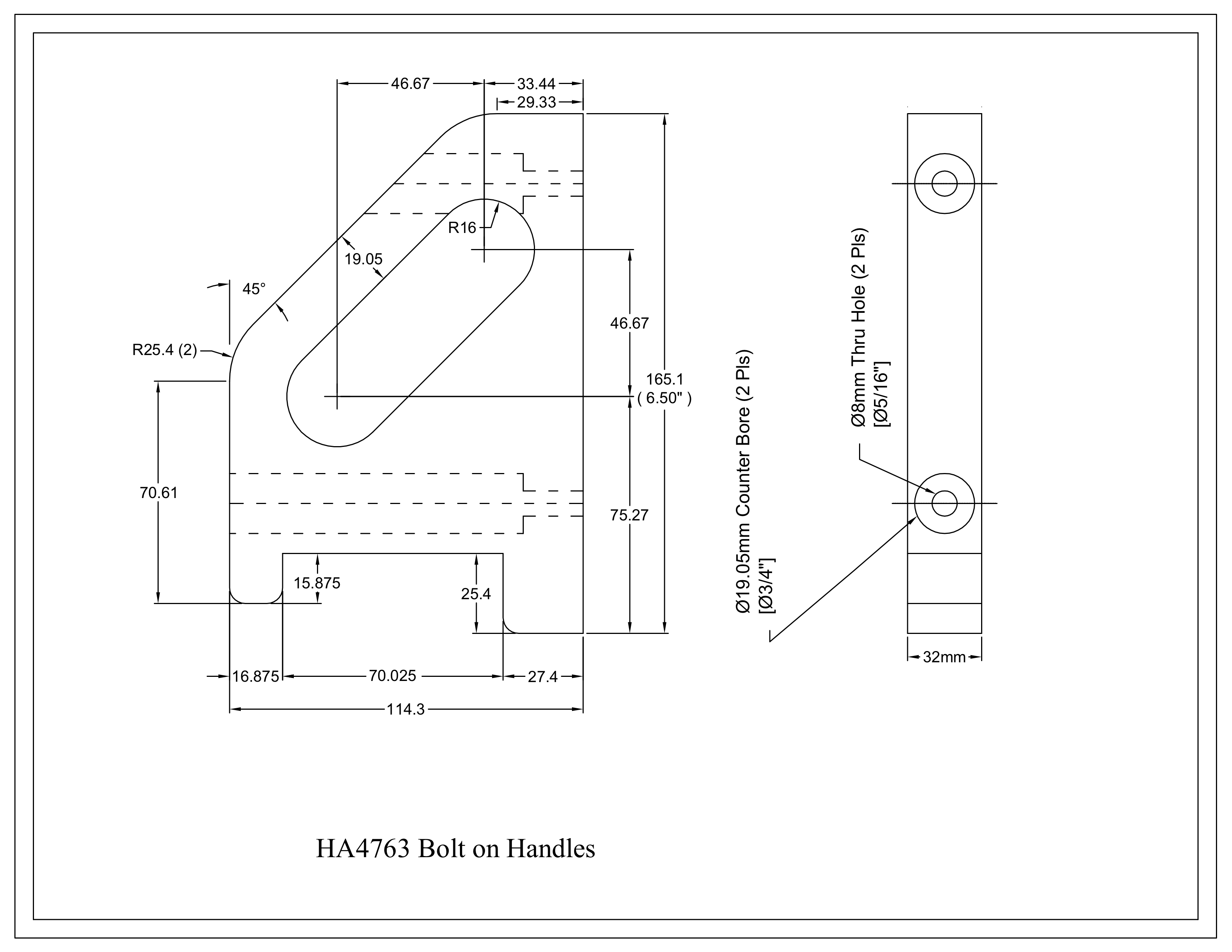 Polypropylene Bolt-on handles price will include hardware. Sold as individual units.